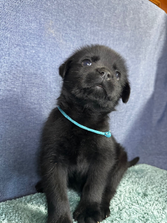 鼻ぺちゃで、垂れた耳とまん丸な目が特徴的なペキプー。被毛もボリュームがありふんわりとしており、見た目はペキニーズ寄りになる傾向があります。