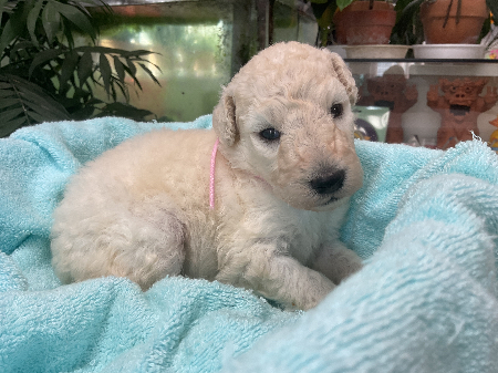 被毛はカーリーで毛量が多いため、2〜3日に一度のブラッシングと、月に一度程度のシャンプー・トリミングを習慣にすることで毛玉や皮膚トラブルを防げます。