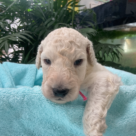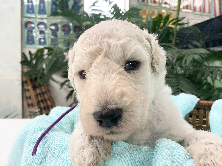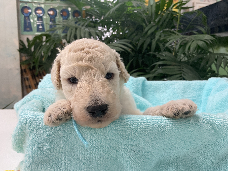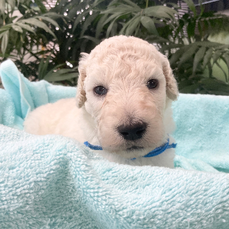 被毛はカーリーで毛量が多いため、2〜3日に一度のブラッシングと、月に一度程度のシャンプー・トリミングを習慣にすることで毛玉や皮膚トラブルを防げます。