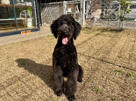 被毛はカーリーで毛量が多いため、2〜3日に一度のブラッシングと、月に一度程度のシャンプー・トリミングを習慣にすることで毛玉や皮膚トラブルを防げます。