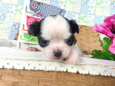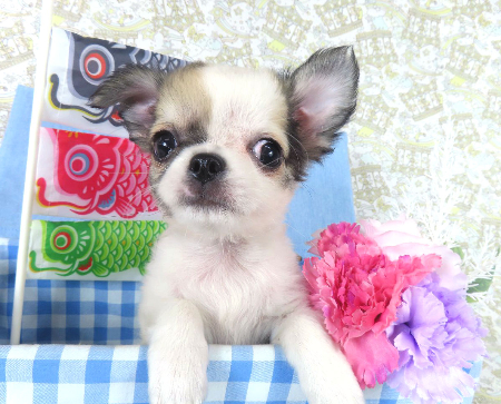 何気なくスムースチワワで検索していた時に、先住犬にとても雰囲気の似ている子を見つけたのがきっかけでした。 最初はネット上の偶然の出会いでしたが、 実際お会いし、チワワに対する愛、ブリーダーを始めた経緯などをお聞きしてとても信頼できる方だと感じました。 お迎えした子と接し過ごしていても、恵まれた環境でとっても大切に育てられたことが伝わりました。 素晴らしく可愛い新しい家族を譲って頂きまして本当にありがとうございます。 これからも大切に責任を持って育てていきます。 遠いですが、また何かの時に里帰りさせてあげたいなと感じています。 これからもよろしくお願い致します。 ありがとうございました。