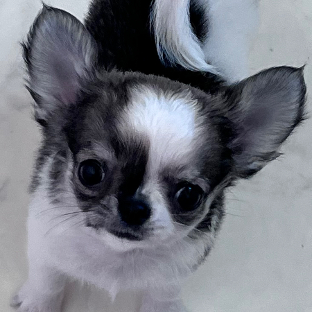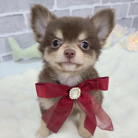 何気なくスムースチワワで検索していた時に、先住犬にとても雰囲気の似ている子を見つけたのがきっかけでした。 最初はネット上の偶然の出会いでしたが、 実際お会いし、チワワに対する愛、ブリーダーを始めた経緯などをお聞きしてとても信頼できる方だと感じました。 お迎えした子と接し過ごしていても、恵まれた環境でとっても大切に育てられたことが伝わりました。 素晴らしく可愛い新しい家族を譲って頂きまして本当にありがとうございます。 これからも大切に責任を持って育てていきます。 遠いですが、また何かの時に里帰りさせてあげたいなと感じています。 これからもよろしくお願い致します。 ありがとうございました。