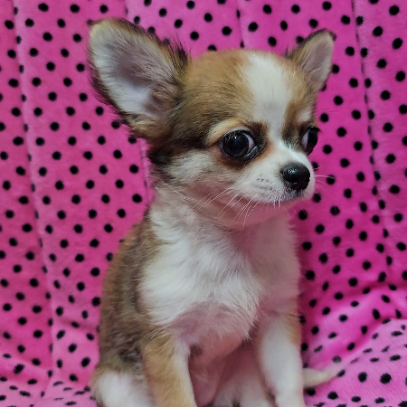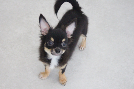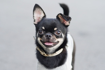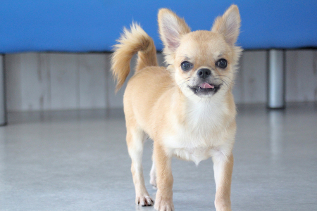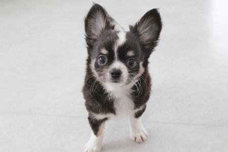 チワワは小型犬種の中でも、特に小ぶりでコンパクトな体格です。耳が大きく、つぶらな瞳が際立つ顔立ちがチャームポイントです。被毛はスムース(短毛)とロング(長毛)の2タイプがあります。ロングタイプにはアンダーコートがあり、毛玉になりやすいため日々のブラッシングが大切です。また多彩な毛色があり、個性ある外見も魅力のひとつです。