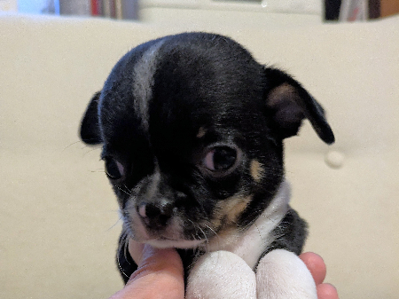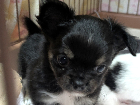 チワワの毛色で1番人気のブラックタンは、口周りや目の上、足先などにクリームやオレンジ系などの差し色が入っています。