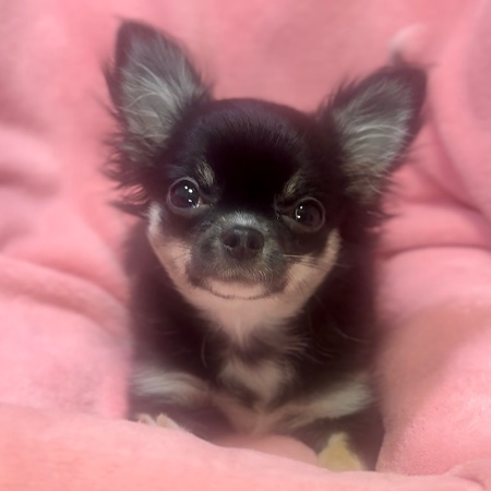 チワワの毛色で1番人気のブラックタンは、口周りや目の上、足先などにクリームやオレンジ系などの差し色が入っています。