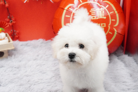毛色は基本のホワイトが主流ですが、クリームや淡いアプリコットが混じることもあります。丸く整えた顔まわりや足先のカットなど、トリミングスタイルのバリエーションも豊富で、愛らしい印象を維持するには定期的なトリミングとブラッシングが必要です。